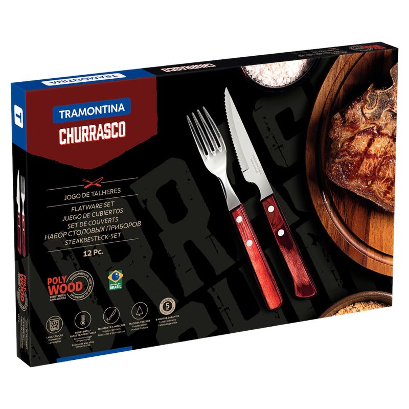 Tenha apenas o melhor na sua mesa e no seu churrasco com o Jogo de Talheres para Churrasco Tramontina em Aço Inox com Cabo Vermelho Polywood 12 Peças. Um jogo exclusivo da linha Churrasco que oferece facas e garfos produzidos com lâminas em aço inox, proporcionando alta durabilidade do fio da lâmina e evitando deformações nos talheres. O cabo de madeira tratada Polywood leva beleza e mais sofisticação para qualquer ocasião, além disso, a madeira é resistente à impactos e altas temperaturas. Uma excelente opção para quem deseja que seu churrasco seja inesquecível.