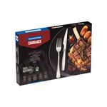 Com o Jogo para Churrasco Tramontina em Aço Inox Facas Fio Serrilhado Acabamento Alto Brilho 12 Peças da linha Zurique, você pode curtir um bom churrasco de um jeito único. O conjunto conta com facas com lâminas temperadas e fios serrilhados, que garantem maior durabilidade no fio de corte e maior resistência à corrosão, e por sua característica de temperabilidade, não riscam as porcelanas. Além de garfos com dentes polidos na parte interna, com formato apropriado para a boca e bordas arredondadas para proporcionar maior conforto no uso. As peças foram produzidas em aço inox, garantindo sua durabilidade e mantendo suas características originais por muito mais tempo. O cabo foi feito para se adaptar melhor a palma da mão. Possui equilíbrio harmônico entre cabo e lâmina. O acabamento em alto brilho confere elegância para qualquer ambiente.