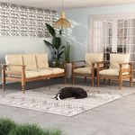 Jogo Sofá Madeira Maciça 3 Lugares E 2 Poltronas Liz Multimóveis Cr7001.t62 Imbuia/bege