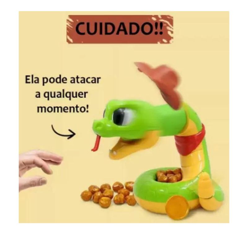 Você deve resgatar as pepitas de ouro antes que a serpente dê o bote reúna os amigos ou a família e brinque com esse jogo divertido que vai animar e testar a habilidade de crianças e adultos.