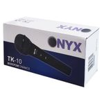 Microfone TK-10 com fio Onyx, produzido em liga e zinco é um microfone durável, com sistema de microfone dinâmico e ótimo custo benefício. É um modelo unidirecional (cardioide) dinâmico, altamente eficaz para uso geral. Testado e aprovado por profissionais do ramo. Aplicações: Palestras, palcos e estúdios