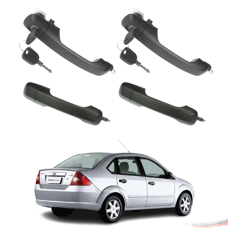 Kit com 4 Maçanetas Externas - Preto - Com Chave - Ecosport G1 2002 a 2012