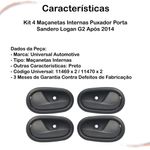 Kit com 4 Maçanetas Internas Pretas - Sandero Logan G2 Após 2014