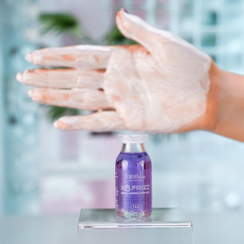 Modo de uso:Xô Frizz E Elixir do Crespo01. No cabelo limpo e úmido, despeje a Ampola Forever Liss na palma da mão levemente molhada;