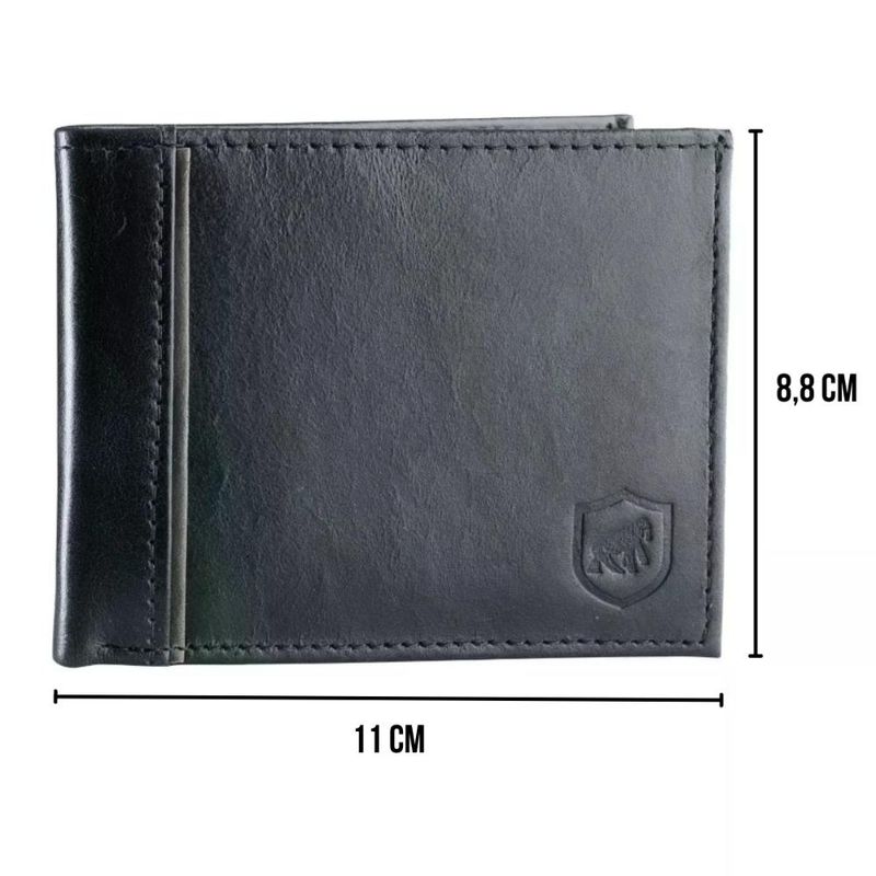 Compartimentos: 3x compartimentos (frente) | 3x Compartimento (verso) + 1 compartimento central para Cnh e cédulas