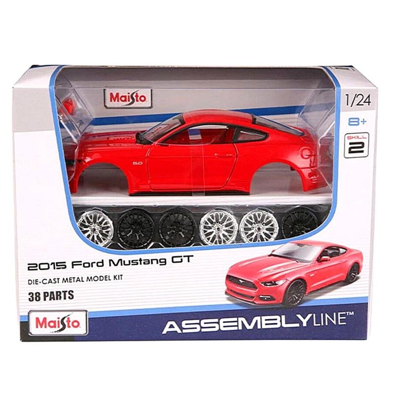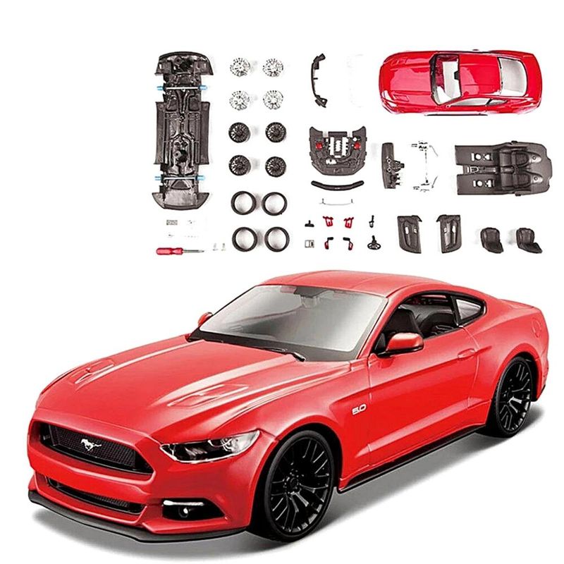 A Miniatura Ford Mustang 2015 1:24 - Kit De Montar Maisto Assembly Line é fabricada em metal die-cast com acabamentos em plásticos, detalhamento fino na pintura, rodas livres e pneus de borracha , com um capô de levantamento para mostrar o motor e portas de abertura que oferecem uma visão do interior recriado fielmente , Os componentes fundidos e de plástico neste kit são fáceis de encaixar manualmente, sem a necessidade de adquirir materiais extras para finalizar o modelo , As peças já vêm pintadas, não é necessário cola e contém 38 peças.