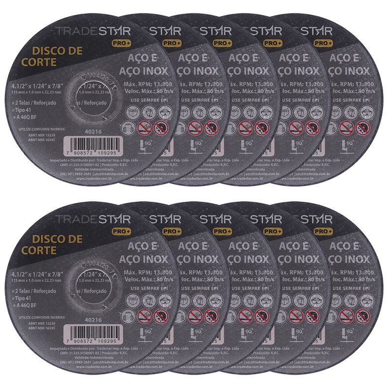 Diâmetro: 4.1/2” (115 mm), Espessura: 1,0 mm, Furo: 22,23 mm.
