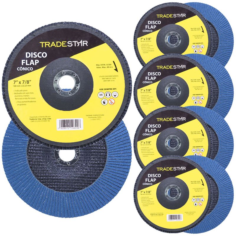 Kit 10 Discos de Lixa Flap Tradestar 7¨ Polegadas Grão 40 para Lixadeira