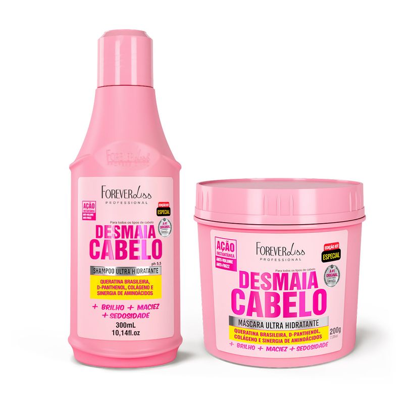 Contém:01 – Shampoo Desmaia Cabelo 300ml01 – Máscara Desmaia Cabelo 200g
