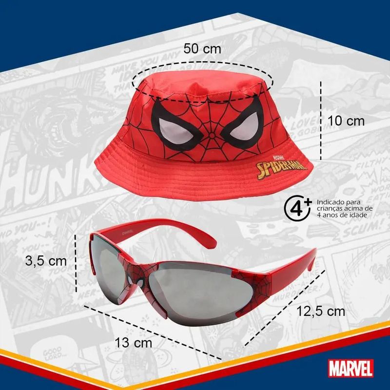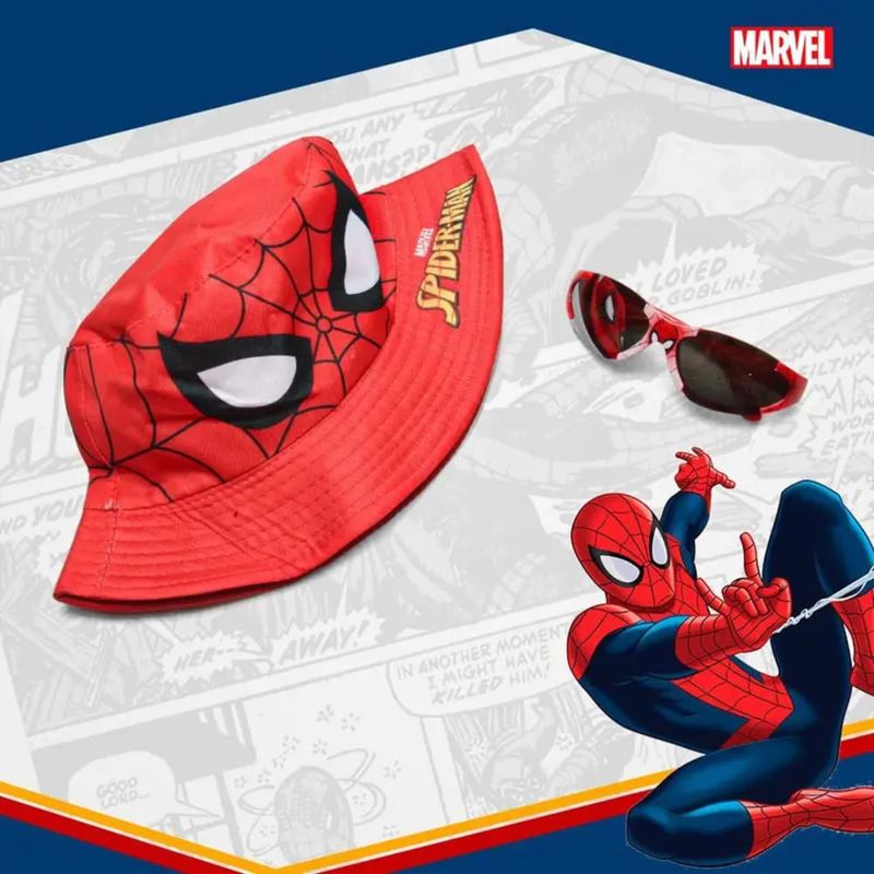O Kit Chapéu com Óculos de Sol Homem-Aranha Infantil é ideal para proteger os pequenos durante os passeios ao ar livre com muito estilo. Inspirado no famoso herói da Marvel, o conjunto inclui um chapéu com estampa temática e um óculos de sol com proteção UV 400.