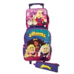 Esse kit é perfeito para atender todas as necessidades da criança. Vem com uma mochila de rodinhas com compartimento principal espaçoso ideal para acomodar os livros, cadernos e materiais escolares no geral e mais dois bolsos laterais de redinha para garrafas.
