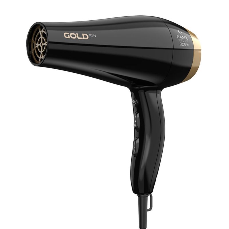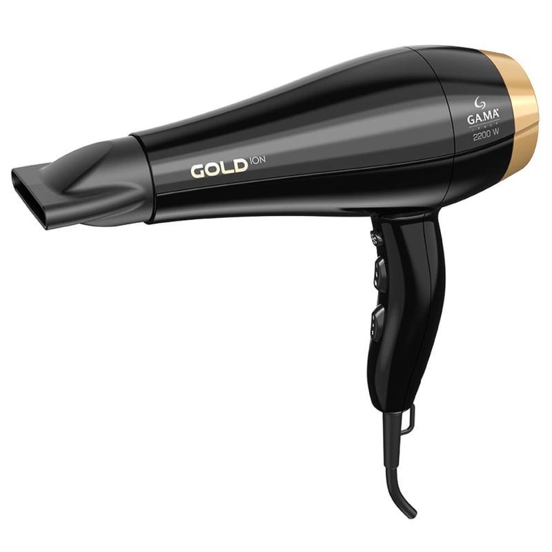 O secador Ga.ma Gold Ion possui um motor AC profissional, de longa duração para maior desempenho e durabilidade, e 2.200W de potência, com um fluxo de ar impressionante. O secador ainda possui 2 velocidades e 6 combinações de temperatura, com botão de jato de ar frio. Combina a tecnologia Ceramic Ion, que reduz o frizz do cabelo, com a exclusiva tecnologia Essential Oil, que nesta versão traz o óleo de argan, rico em ômega 9 e outros ácidos graxos. O resultado é um cabelo com aspecto hidratado e nutrido.