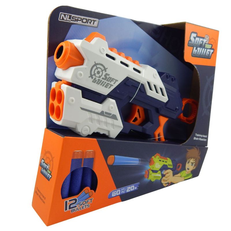 Acompanhado por 12 dardos de espuma, você poderá participar de batalhas épicas com seus amigos sem preocupações. é só mirar, apertar o gatilho e... pow!