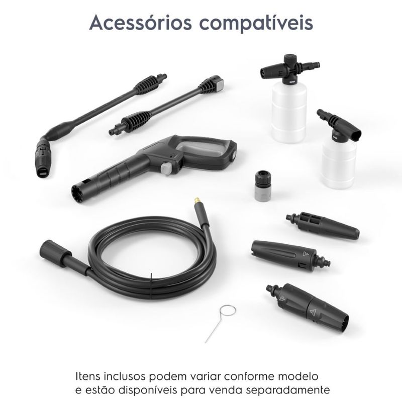 Equipada com um motor potente de 1400 W, a lavadora é capaz de atingir uma pressão máxima de água de 1650 PSI, garantindo uma limpeza doméstica eficaz sem desperdício de água.