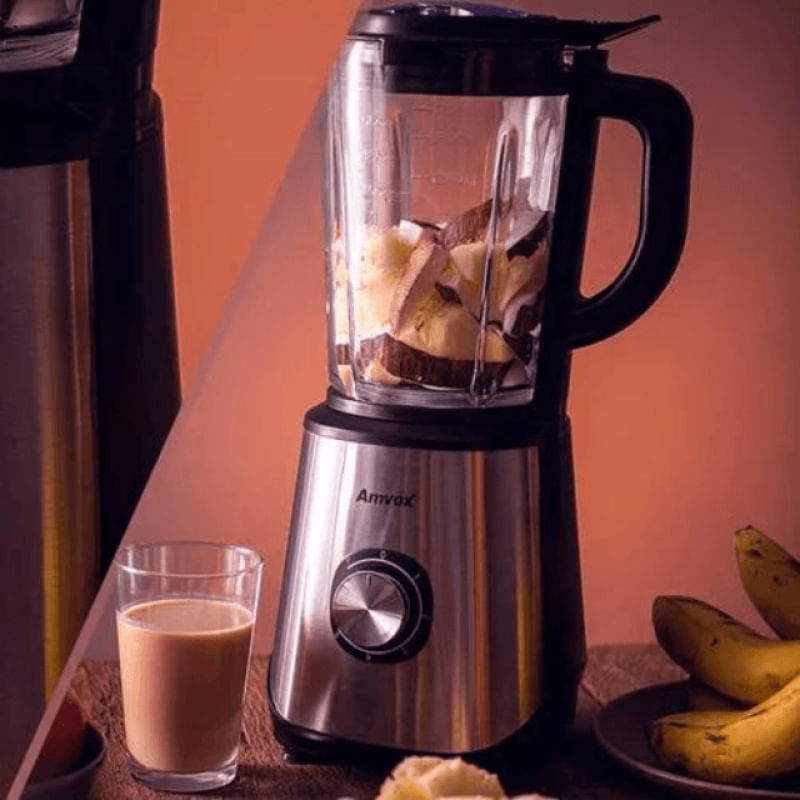O novo liquidificador AMVOX ALQ 0209 possui jarra de vidro que impede a passagem de odores para os alimentos, capacidade de 1,7L, 5 velocidades incluindo a função pulsar, mais potencia de 800w, com revestimento em inox e lâminas de aço. Praticidade na limpeza e qualidade ao preparar suas receitas.