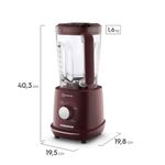 O produto funciona em cinco velocidades e vem com 4 receitas predefinidas para maior precisão no preparo de bolos, massas, sucos e vitaminas. É equipado com uma jarra de plástico ultrarresistente, livre de Bisfenol A, com design ergonômico e uma generosa capacidade total de 2,7 litros.