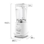 O produto funciona em 12 velocidades e vem com 5 receitas predefinidas para maior precisão no preparo de bolos, massas, sucos e vitaminas. É equipado com uma jarra de plástico ultrarresistente, livre de Bisfenol A, com design ergonômico e uma generosa capacidade total de 3,2 litros.