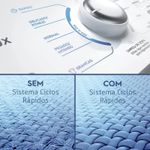 O sistema de lavagem Ciclos Rápidos aperfeiçoa automaticamente o tempo dos programas, deixando-os mais rápidos, se necessário, e mantendo o mesmo desempenho, oferecendo mais cuidado e menos desgaste para as roupas.
