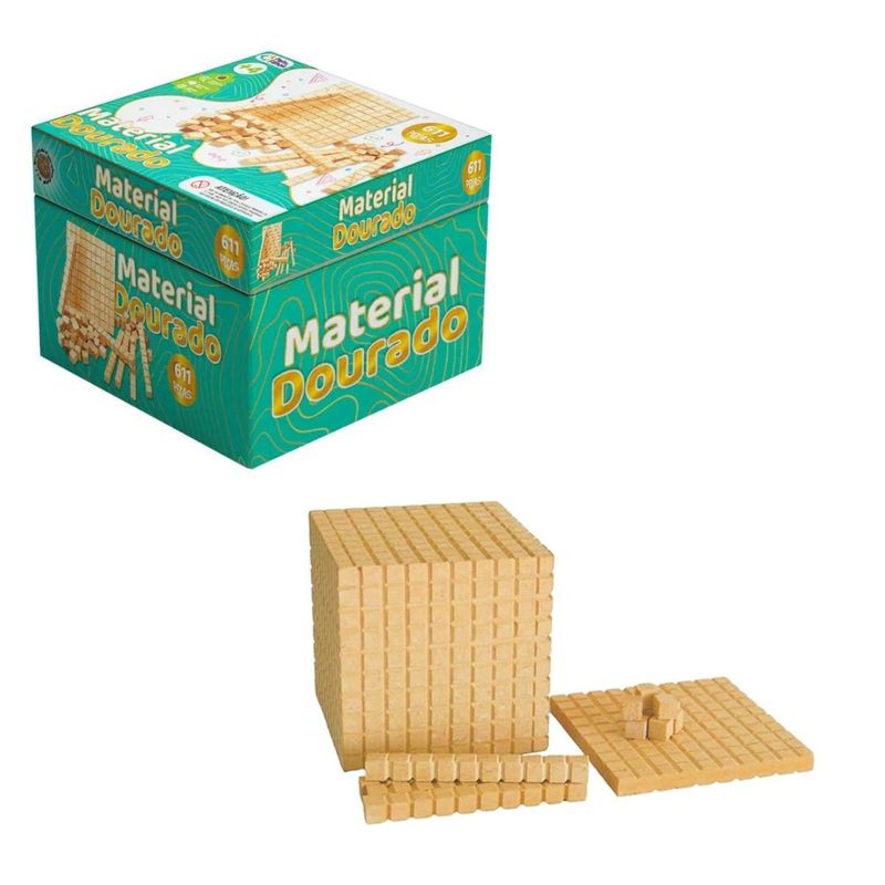 O Material Dourado destina-se a atividade que auxilia o ensino e a aprendizagem do sistema de numeração decimal e dos métodos para efetuar as operações fundamentais (Mais, menos, multiplicar e dividir).