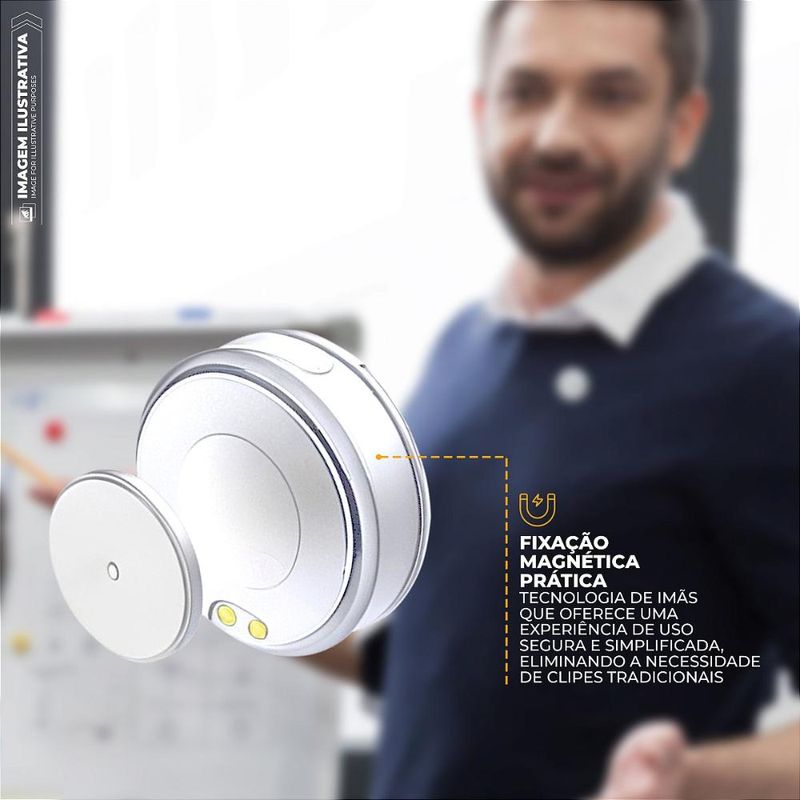 Com um design inovador, o microfone utiliza um sistema magnético que permite fixá-lo de forma segura e discreta em qualquer peça de roupa. Esse recurso elimina a necessidade de clipes tradicionais, proporcionando maior conforto e liberdade de movimento durante o uso. Compacto e leve, ele é ideal para longas sessões de gravação sem causar incômodo.