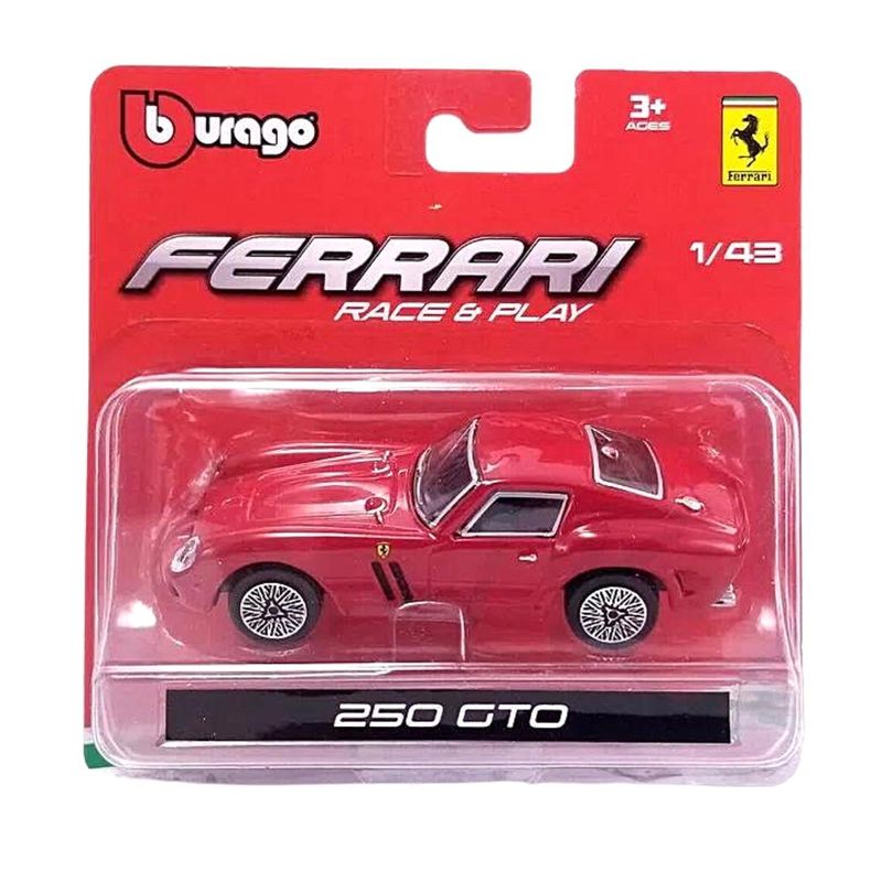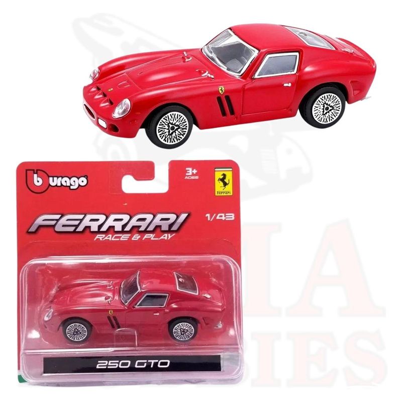 A miniatura Ferrari em escala 1/43 da Race & Play é fabricada em metal die-cast com acabamentos em plásticos, detalhamento fino na pintura e pneus de borracha.