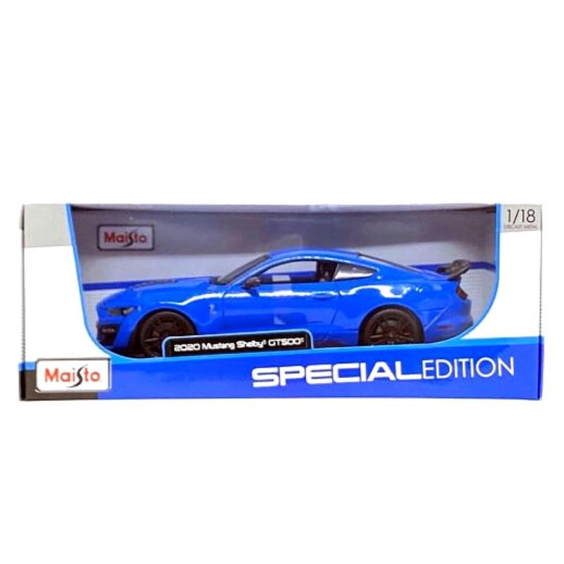 A miniatura de carro Mustang Shelby GT500 de 2020 em escala 1/18 da Special Edition é fabricada em metal die-cast com acabamentos em plásticos, detalhamento fino na pintura, rodas livres e pneus de borracha.