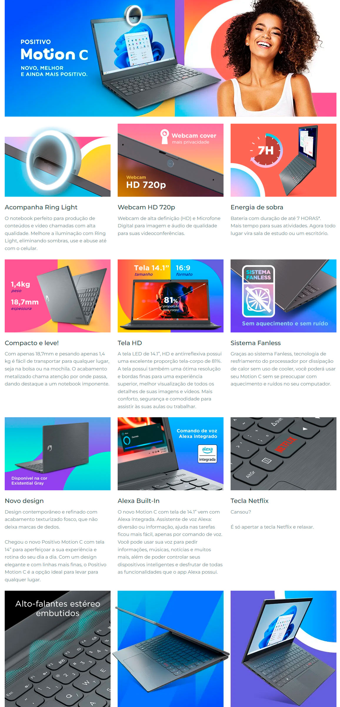 Notebook C4128g-14 Intel Celeron Dual-Core™ 128GB 4GB Windows 11 Home 14" Positivo Cinza