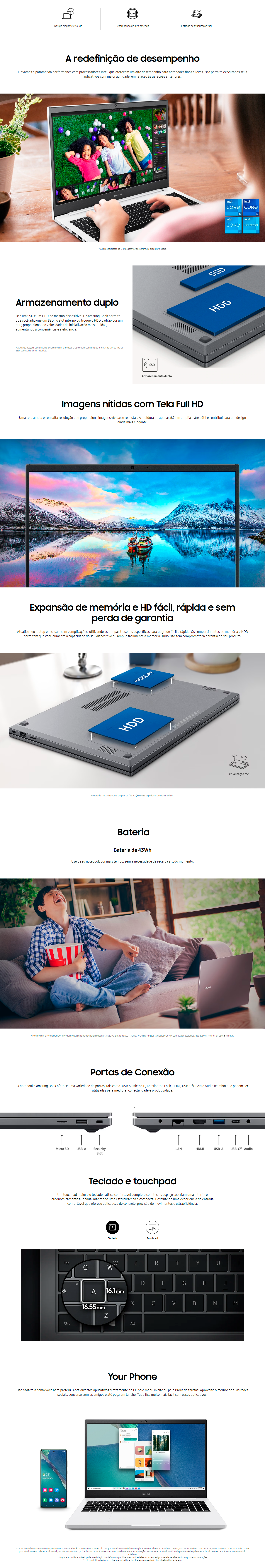 Notebook Samsung NP550XDA-KP3BR Celeron-6305 256GB SSD 15.6" FHD Cinza