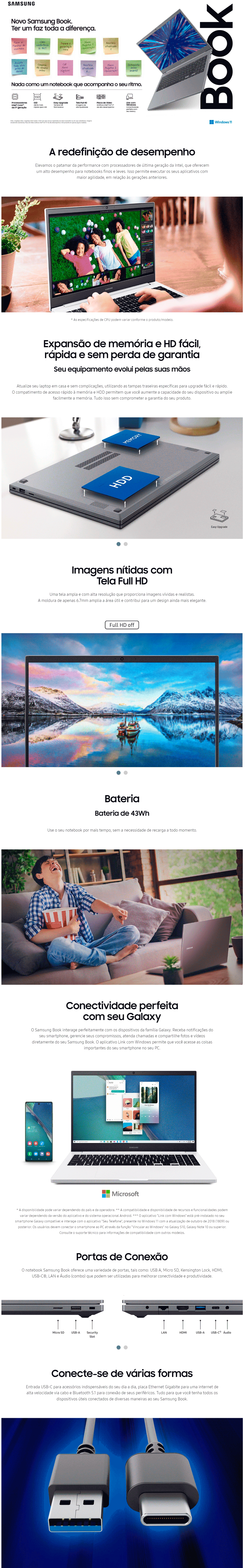 Notebook Intel Celeron-6305 4GB 500GB W11 15,6" Cinza Chumbo NP550XDA-KP1BR Samsung