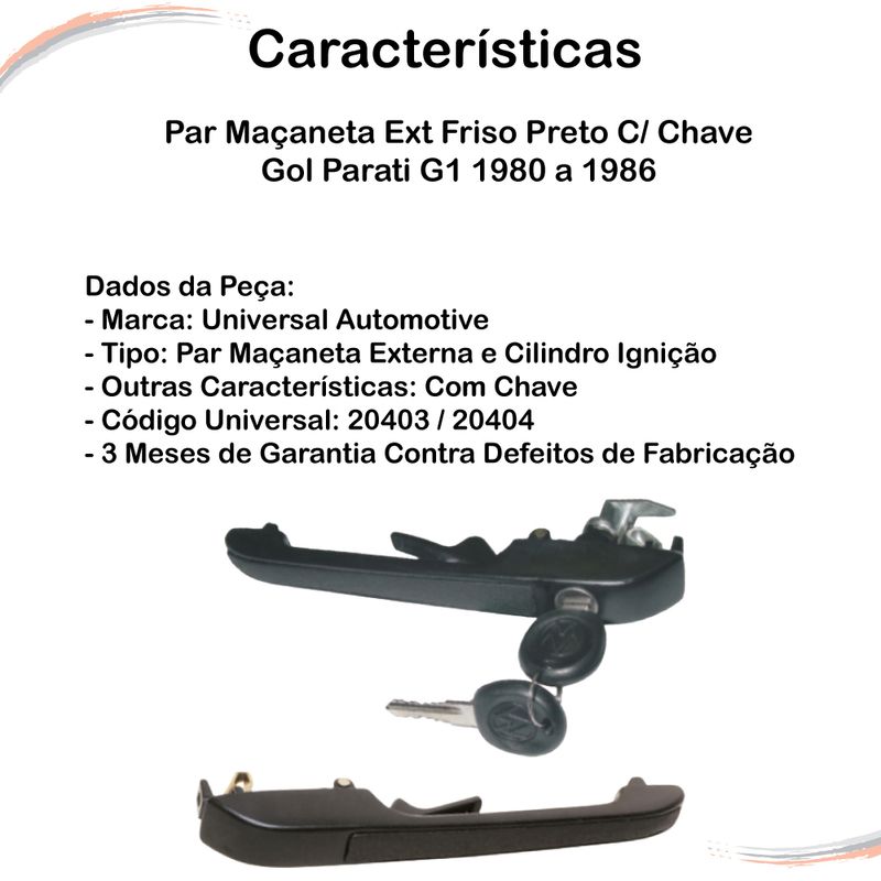 Par Maçaneta Externas - Com Friso Preto - Encaixe S - Gol e Parati G1 1980 a 1986