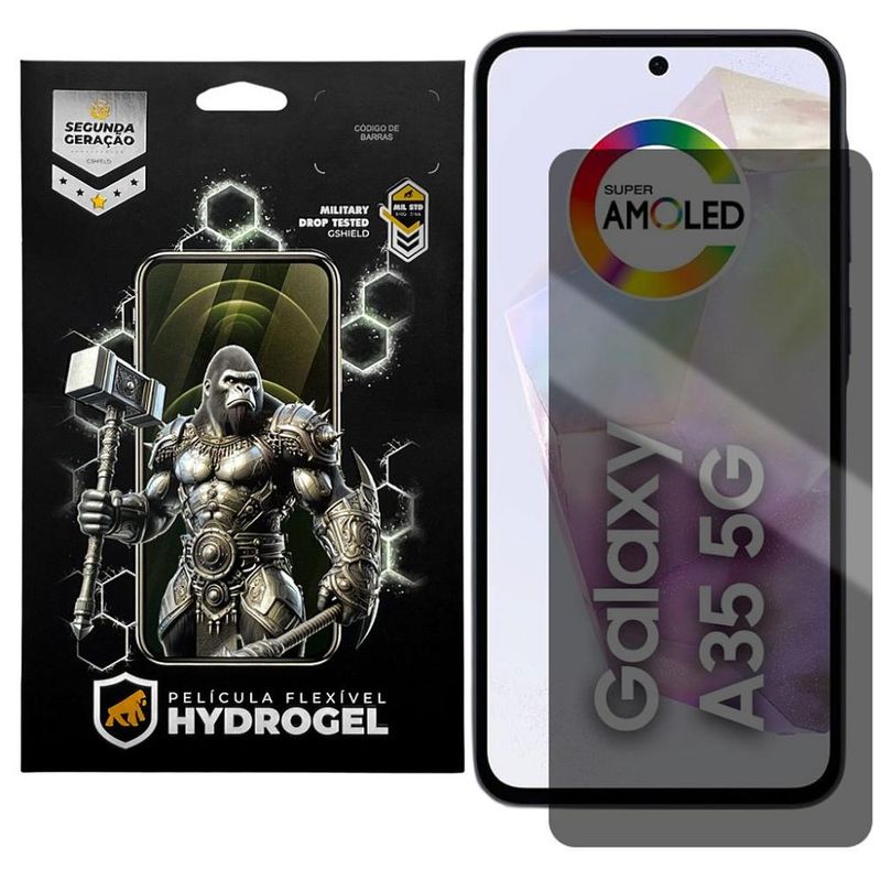 DESCRIÇÃO Aumente a resistência do seu Galaxy A35 com a película de Hydrogel! A Película de Privacidade de Hydrogel para Galaxy A35 da Gshield é a escolha ideal para reforçar a proteção da tela do seu dispositivo enquanto preserva sua privacidade. Desenvolvida com a inovadora tecnologia hidro nano pet e TPU Soft Gel, essa película é resistente contra riscos indesejados. O revestimento oleofóbico da película não apenas aprimora a resistência contra arranhões, mas também reduz as marcas de digitais na tela, proporcionando uma visão clara e nítida em todos os momentos. A adaptação perfeita às extremidades curvadas do seu dispositivo assegura uma cobertura completa do visor, preservando a estética e funcionalidade do aparelho. Escolher a Película de Hydrogel Gshield é optar por um escudo de proteção sofisticado, que une tecnologia de ponta e durabilidade para manter a tela do seu celular impecável. Cuide do seu Galaxy A35 com estilo e confiança, investindo na excelência em proteção que só a Gshield proporciona. Clique aqui para acessar os manuais dos produtos Gshield. ESPECIFICAÇÕESMaterial: Hidro nano pet + TPU Soft Gel Marca: GshieldEspessura: 0,19mm Proteção: Contra pequenos impactos e riscos à tela Dimensões: Cobre todas as dimensões do aparelho, podendo haver pequenos recuos para melhor a aderências nas laterais. Certificações: US Military