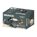 Conforto e segurança também são prioridades na linha Pic Poc. O cabo antitérmico é feito em baquelite, projetado para ser ergonômico. A tampa de vidro temperado permite visualizar o conteúdo, apresenta borda de silicone para vedação, saída para vapor e trava de segurança, garantindo que o calor e a umidade permaneçam dentro da pipoqueira.
