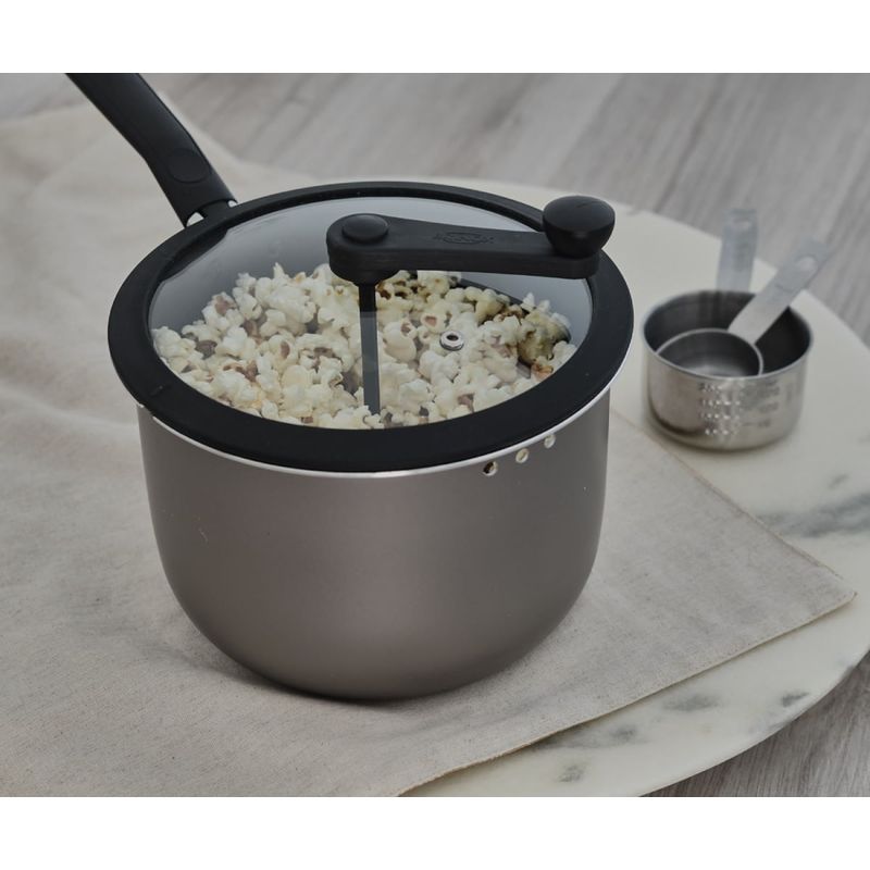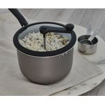 O misturador em nylon permite melhor aproveitamento do milho e performance, facilita a mistura dos temperos sem riscar a cobertura antiaderente da panela.