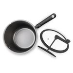 A panela tem as seguintes dimensões: 20cm x 14,5 cm - 4,2 litros e capacidade para preparar 70 gramas de milho. A estrutura é de alumínio e possui três saídas para vapor. O cabo e manípulo são produzidos em baquelite antitérmico, não esquentam e proporcionam um toque confortável e ergonômico. A tampa de vidro temperado com borda de silicone, saída para vapor e trava oferece maior segurança durante o uso.