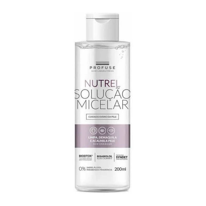 Profuse Nutrel Solução Micelar 200ml Com ativos 100% naturais, Nutrel Solução Micelar associa a tecnologia antipoluição BioDtox® (um poderoso sistema que estimula a detoxificação e a proteção natural da pele contra à poluição e ao estresse), ao mecanismo de limpeza das micelas (moléculas que absorvem as impurezas) para uma limpeza segura, eficaz, prática e sem agredir a pele. Nutrel Solução Micelar é ideal para sua rotina de limpeza: higieniza de forma eficaz e sem agredir a pele, detoxifica e protege dos danos causados pela poluição e estresse oxidativo, auxilia na remoção das maquiagens mais resistentes, hidrata, acalma e fortalece a pele, mantém o pH fisiológico, minimiza a aparência dos poros, previne os sinais visíveis do envelhecimento por sua ação antioxidante e reduz cravos e espinhas.