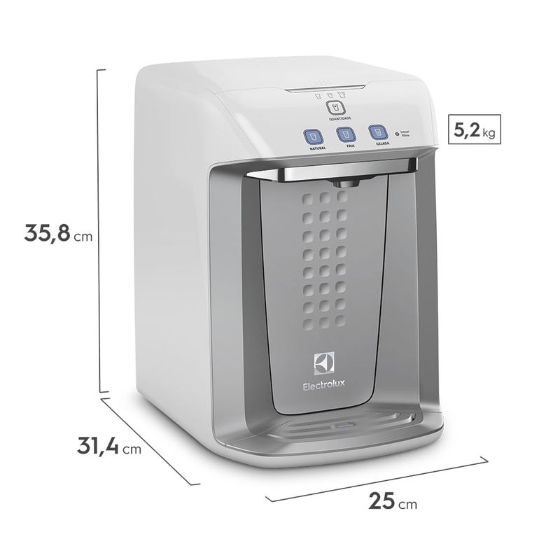 O aparelho possui um design moderno que se destaca pelo painel Blue Touch com todas as funções bem sinalizadas e sensíveis ao toque, além de contar com eficiente sistema eletrônico de refrigeração que permite selecionar até três temperaturas. Com classificação máxima recebida pelo Inmetro (P1/C1), o filtro Acqua Clean tem longa duração e aciona um alerta automático quando estiver na hora de trocar.
