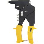 Material do corpo do rebitador: Aço estampado Quantidade de bicos do rebitador: 04 bicos Comprimento total do rebitador: 290,0 mm Altura do rebitador: 100,0 mm Diâmetro máximo de rebite: 4,8 mm Tipo do rebite indicado: Alumínio