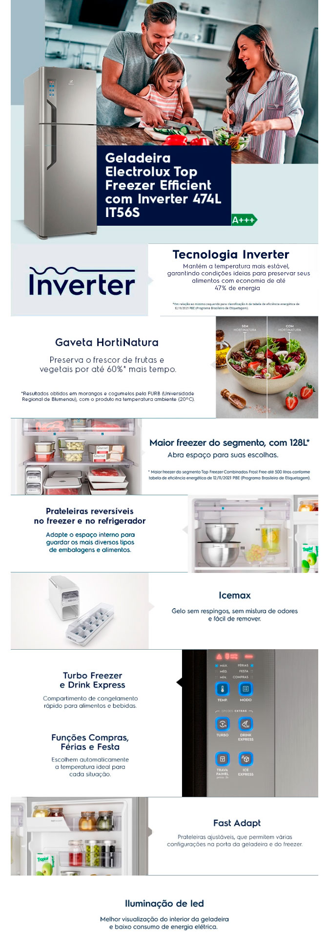 Refrigerador Inverter Frost Free IT56S Electrolux Branco 474 Litros 127V