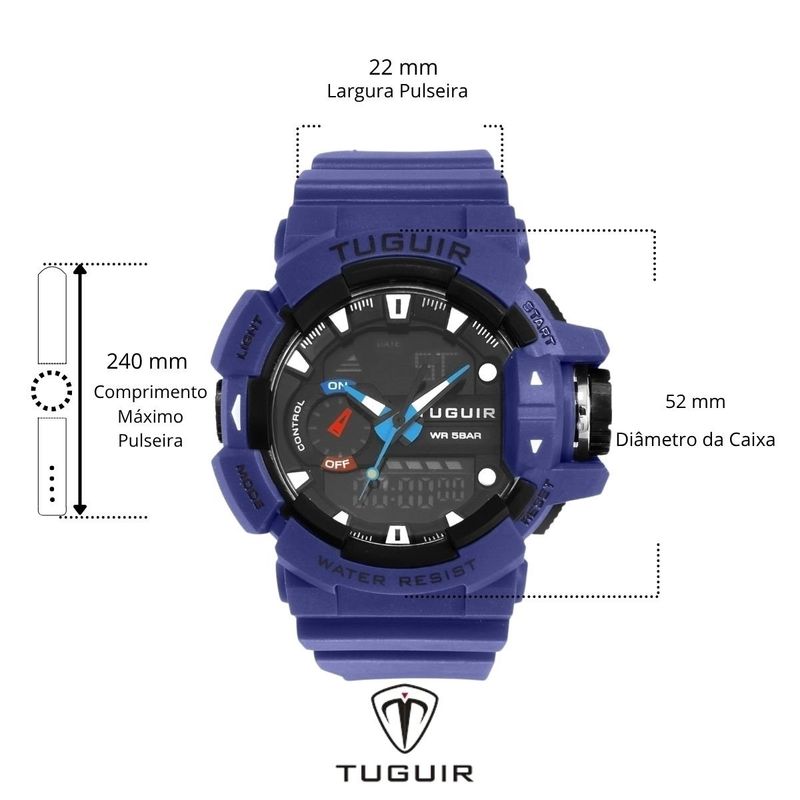 Resistente à Água: 5 ATM (Pode ser usado para nadar no raso, por pouco tempo submerso)