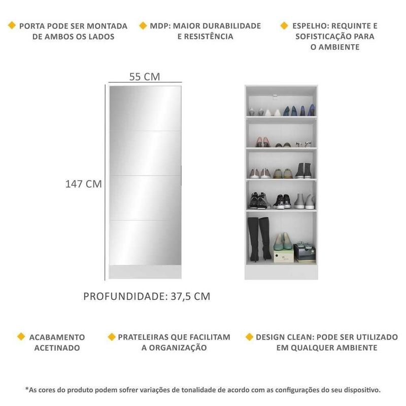 Sapateira 1 Porta Com Espelho Jade Plus Multimóveis Branca