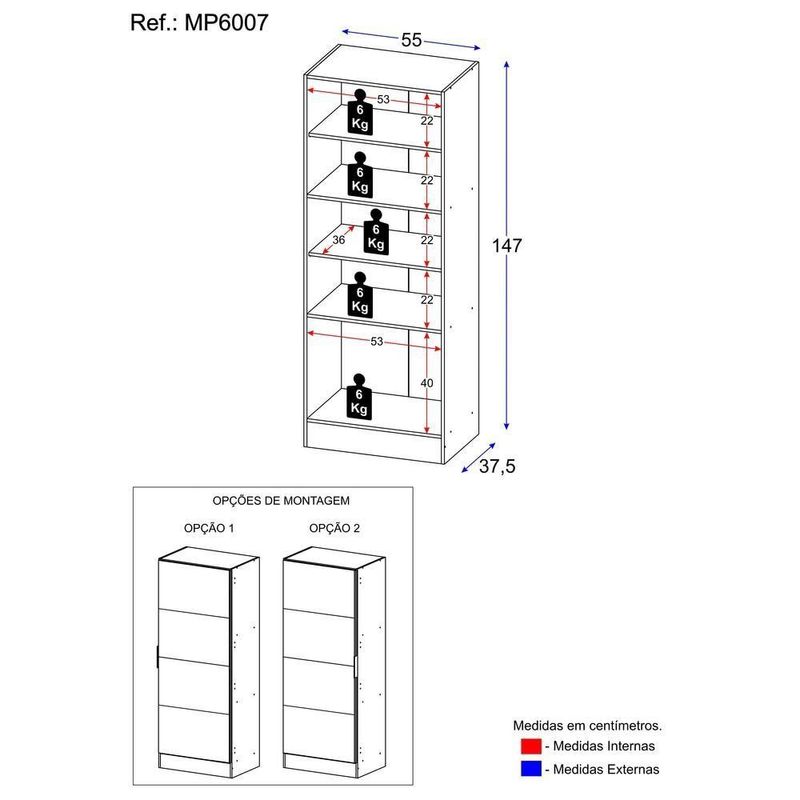 Altura: 147 cm | Largura: 55 cm | Profundidade: 37,5 cm