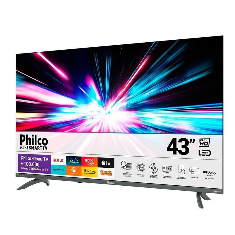 Smart TV 43” Philco PTV43VA4REGB Led Roku TV E Dolby AudioSmart TV 43" Philco - Modelo PTV43VA4REGBA qualidade de áudio e desempenho da Smart TV 43" Philco vai te surpreender. Com a tecnologia Dolby Audio, você consegue assistir a filmes e séries, jogos ou curtir suas músicas favoritas com áudio rico, limpo e poderoso.Características:Processador Quad-Core: Garantindo maior velocidade no processamento, até mesmo dos gráficos mais complexos.