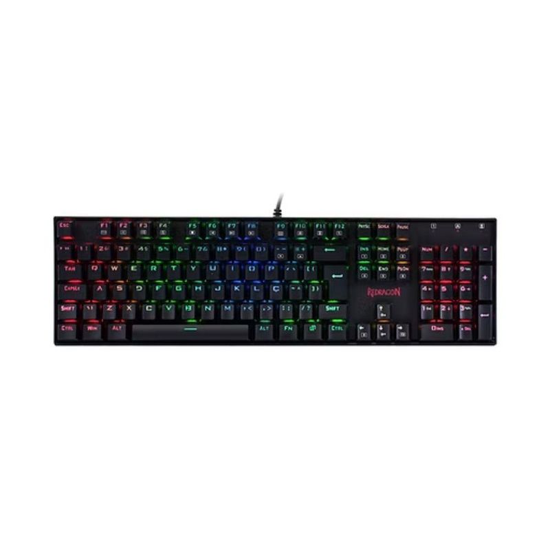 Características:  - Marca: Redragon  - Modelo: Mitra RGB (K551RGB-1)  - Cor: Preto com detalhes Marron  O Teclado Gamer Redragon Mitra RGB é ideal para jogadores que buscam alto desempenho e durabilidade. Seu design robusto combina metal e plástico ABS, oferecendo conforto e resistência. Possui iluminação RGB personalizável, teclas multimídia dedicadas e tecnologia Anti-Ghosting, garantindo precisão e agilidade em todos os jogos.  Especificações Técnicas: Teclado mecânico de alto desempenho, 12 teclas para controle multimídia, Controle de iluminação On-The-Fly  - Sistema N*Key Rollover: Anti-Ghosting em 100% das teclas, Funcionamento da tecla Win alternável (FN+Win para ligar/desligar), Keycaps com padrão Double-Shot Injection, Fabricado com o renomado Switch mecânico Outemu Blue  - Outemu Blue: Feedback tátil, resistência média, clique audível característico  - Múltiplos modos de iluminação RGB  - Construção robusta em metal e plástico ABS  Dimensões / Peso:  - Dimensão do produto: 43 cm (L) x 12,5 cm (A) x 4 cm (P)  - Peso líquido: 1,270 kg  - Peso bruto (com embalagem): 1,270 kg  - Conteúdo da Embalagem:1x Teclado Gamer Redragon Mitra RGB, Manual do usuário  - Garantia: 12 meses