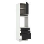A Torre Quente de 60 cm da linha de cozinhas Agata da Madesa conta com três gavetas espaçosas, sendo uma mais profunda, todas com corrediças telescópicas que possibilitam abertura total.