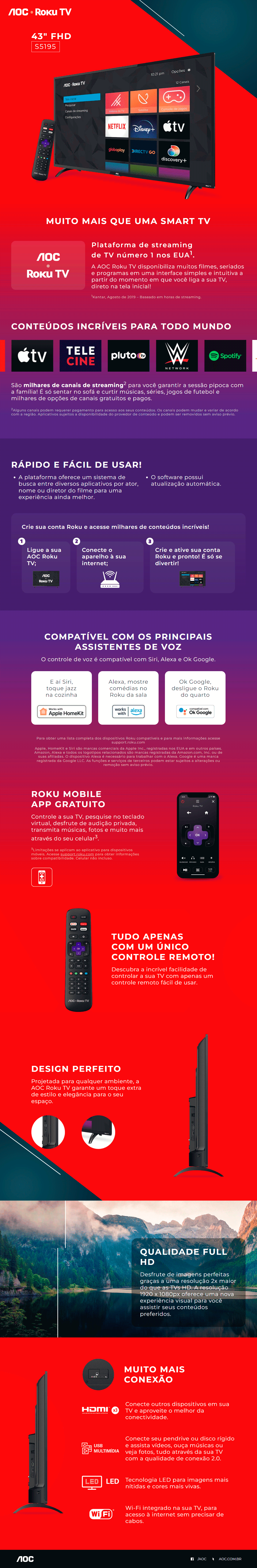 Smart TV 43" AOC Roku 43S5195/78G Full Hd