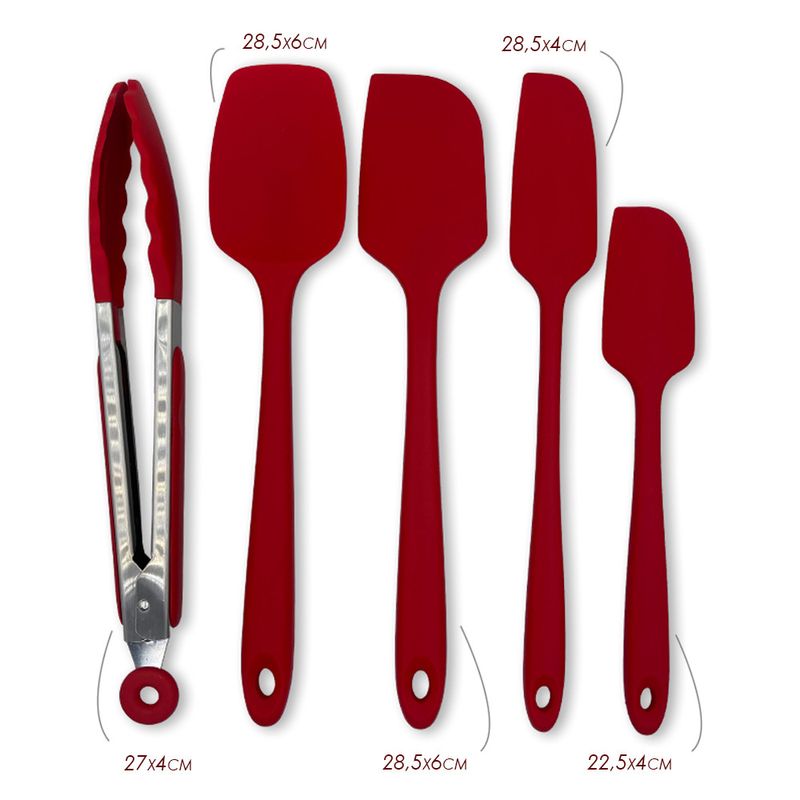 Conjunto De Espátulas E Pegador Em Silicone Unyhome 5 Peças - VERMELHO